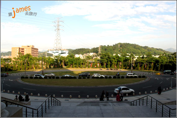這是由台階上往下看的大門廣場,馬上就看到一對新人在拍婚紗囉~