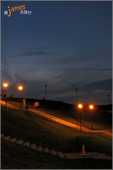 上面這張照片是即將入夜後的景象,可以看到一個很大的廣場,上面的階梯都是可以看夜景的好地方!