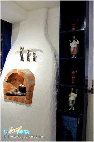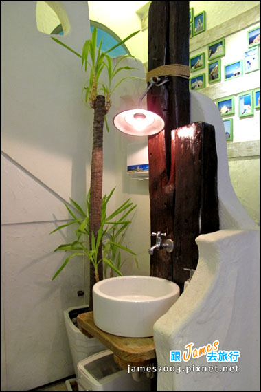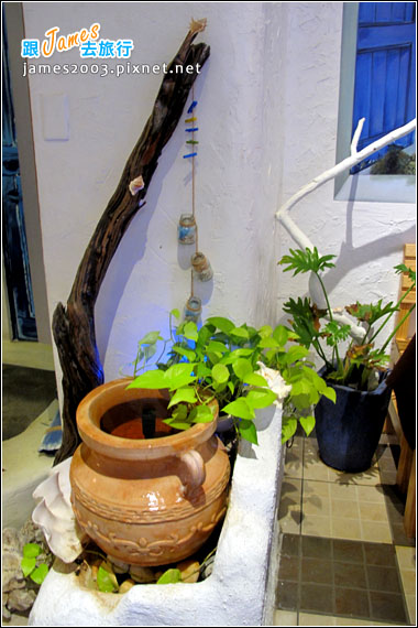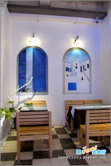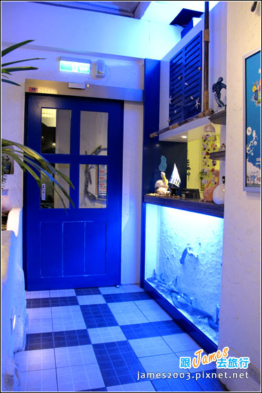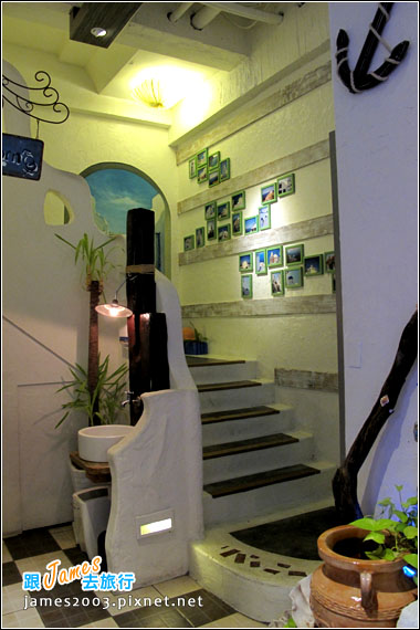 入口處的設計就充滿了異國的風情,圓弧的窗型設計與藍白的色系真是絕妙的搭配阿~