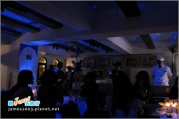 在藍色的氣氛燈與希臘風的陪伴下用餐~