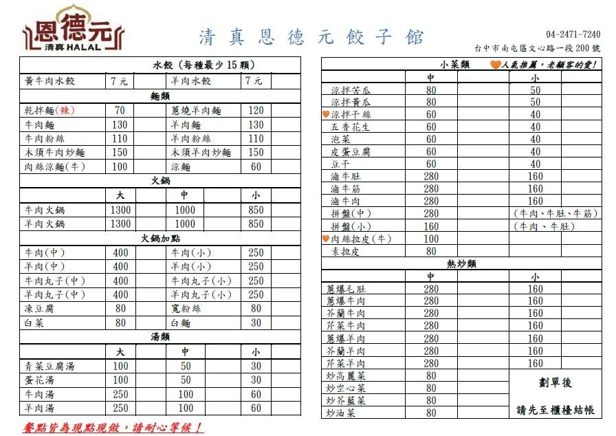 這次選擇了位於文心路的清真恩德元餃子館(南屯捷運站),點了最有名的牛肉丸子火鍋,