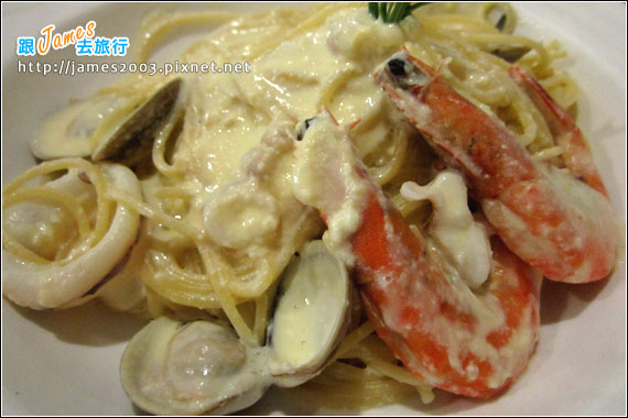 所以點了白醬的海鮮義大利麵~