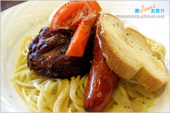 第一次吃意大麵還有雞腿跟德國香腸可以吃的~