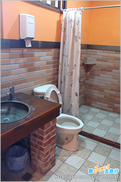 用紅磚與木板來建構洗手台,古早味濃厚~