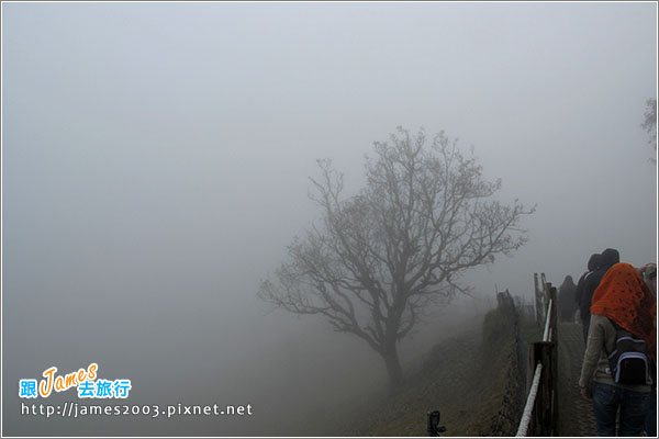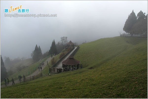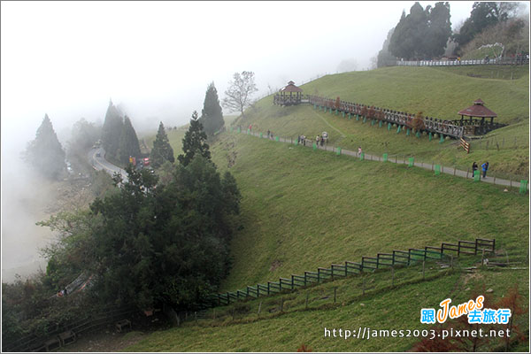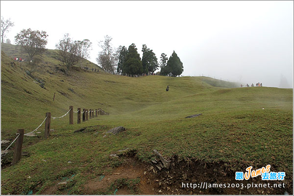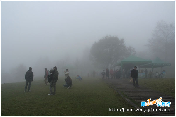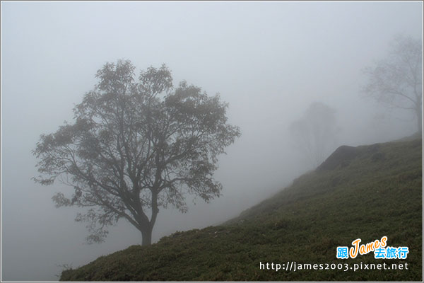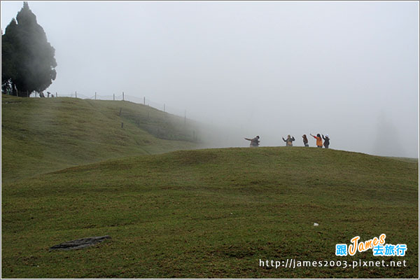 預計看到一大片綠油油的草地,卻被山嵐覆蓋了,