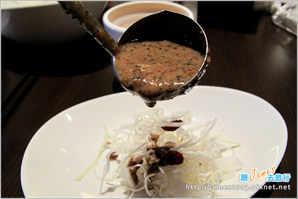 重點是這玩意,淋在高麗菜絲上的芝麻醬讓整個口味美味到破表~
