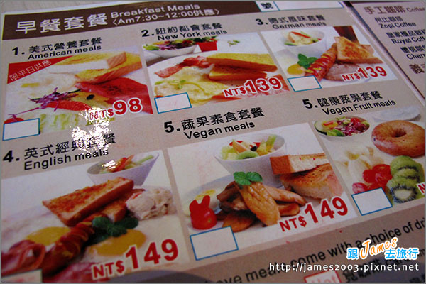 雖然沒有吃到早餐,菜單還是讓大家參考一下,