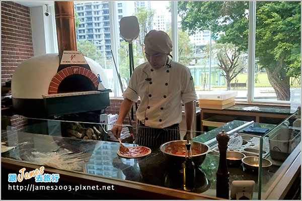 另一個角落,忙碌的帥哥廚師在現場烘烤披薩,