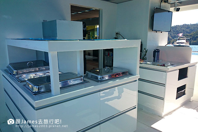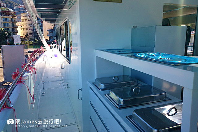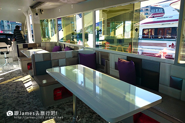 有別於一般的客船,採雙船體設計(好像雪橇一樣的設計,中間是空的),
