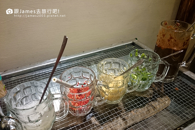 門口擺放菜單跟名片的鐵桶很吸睛。