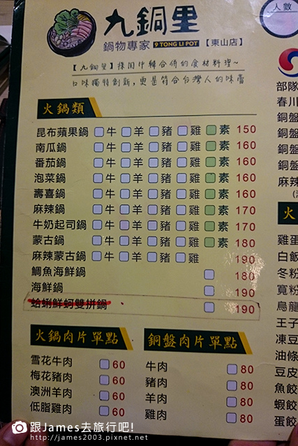 鍋物種類還蠻多樣式的:一般火鍋、韓國部隊鍋、韓國銅盤烤肉、石鍋拌飯等,