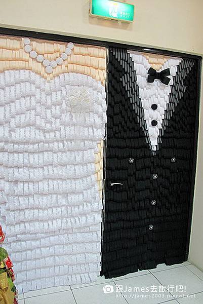 樓上是緞帶王的緞帶珍藏處,門口是非常有創意的新郎新娘意象設計~