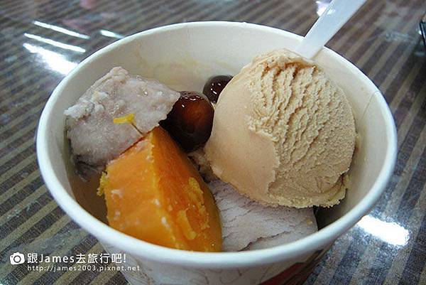 含有源至宜蘭的包心粉圓、地瓜、芋頭、還有冰淇淋,
