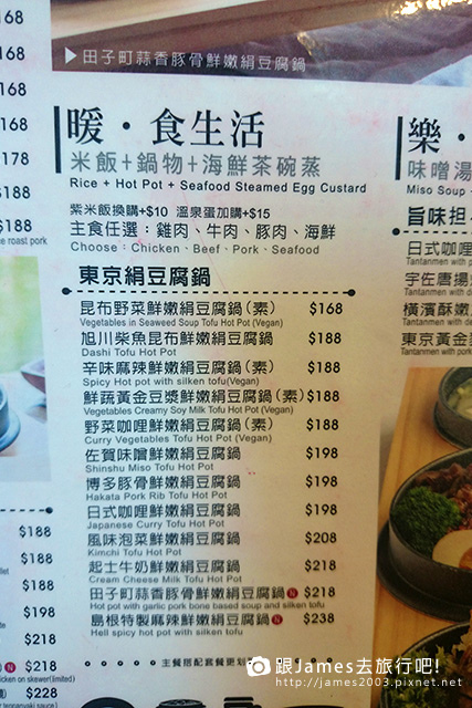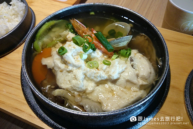 我點的是 柴魚昆布絹豆腐鍋-海鮮口味,用木器盛裝三個小鍋,看起來蠻特別的,