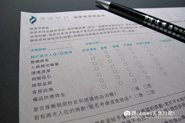 經營者一定很注重旅客的想法,所以會有這個意見調查表,其中的睡眠品質是很多飯店不敢問的。