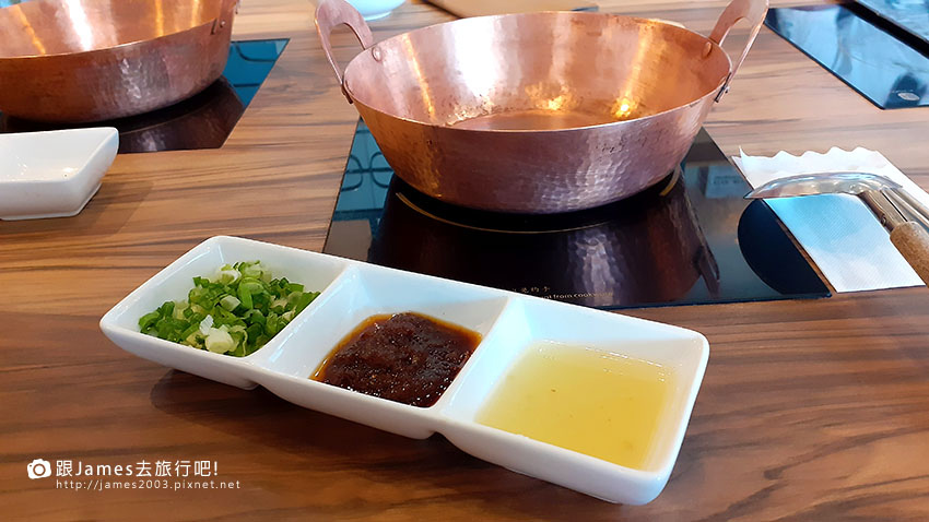 沾料盤採用三格式,可以選擇多種"配方",這邊用的是罕見的銅鍋喔。