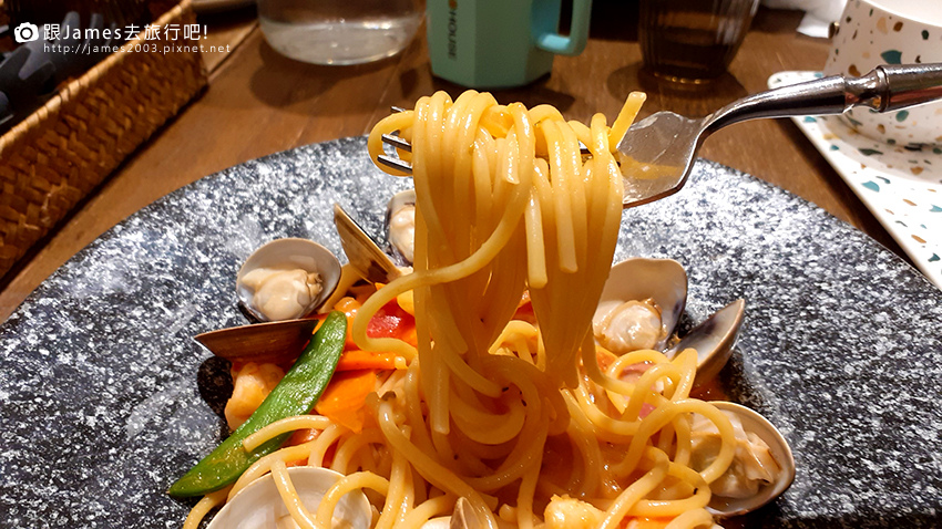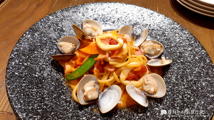 綜合海鮮義大利麵(紅醬) NT$269,這裡餐點命名還算中肯,沒有出現「QQㄋㄟㄋㄟ好喝到咩噗茶」狀況。