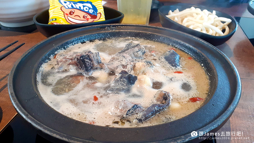我點了一個很特別的火鍋口味~蒜頭雞鍋,湯頭濃郁雞肉也蠻大塊的。