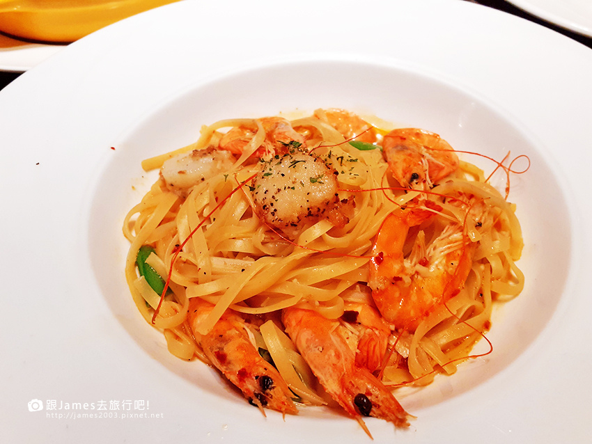 想來一口嗎,海鮮與番茄紅醬完美搭配的義大利麵。