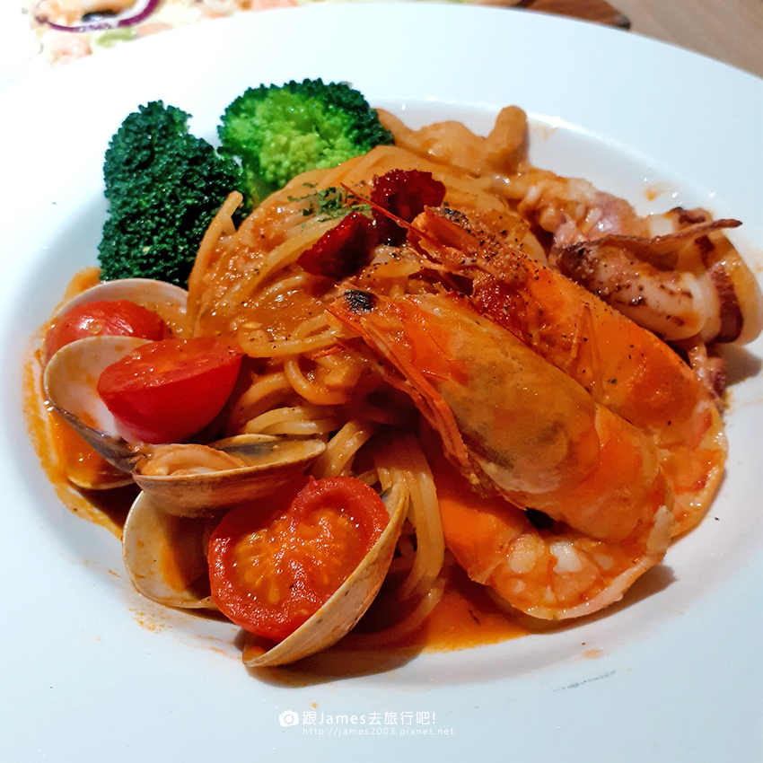 風乾蕃茄海鮮義大利麵,蝦子剝好的好感度大增,食材搭配都十分美味。