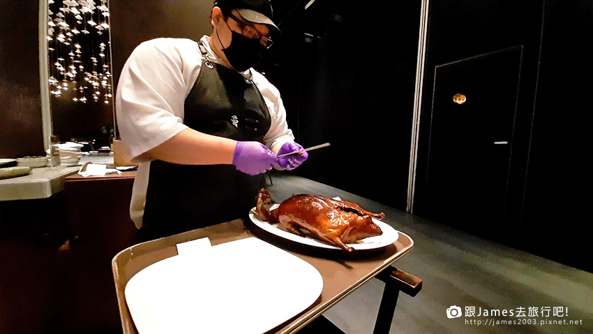 ▲ ▼誘人的香氣襲來,廚師正在現場展示烤鴨片皮!看著廚師熟稔的手勢和專業的操作技巧,我的心情也被帶入了高潮。