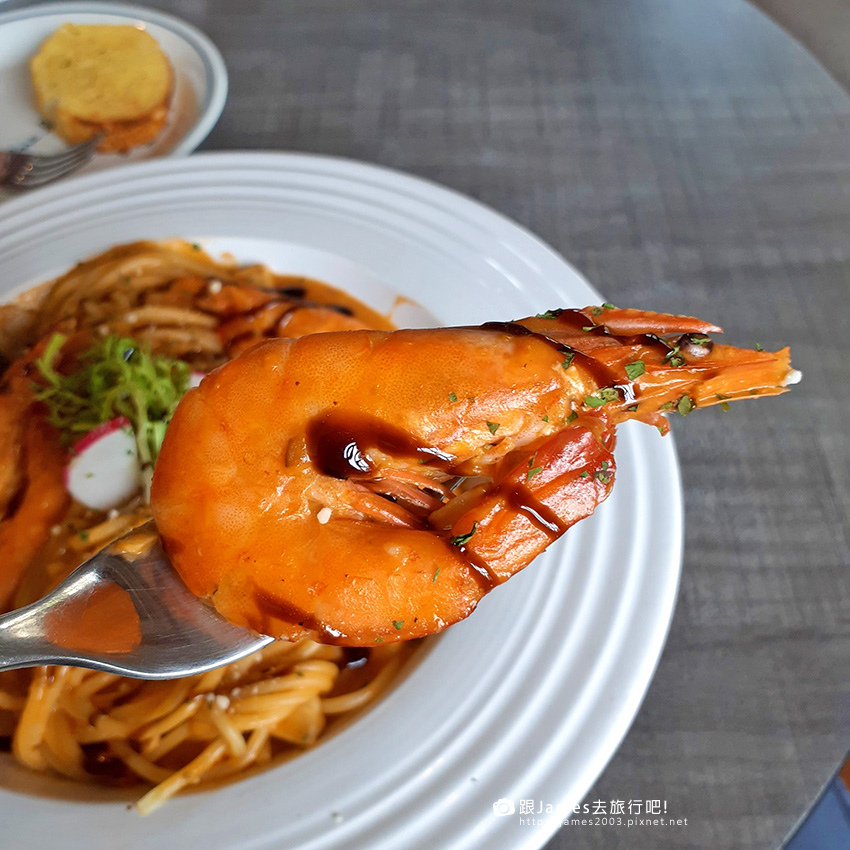 ▲ 發現鮮蝦的泥腸有點多且未去除,雖能品嚐到鮮美的蝦肉和濃郁的番茄醬汁,只是稍嫌可惜@@