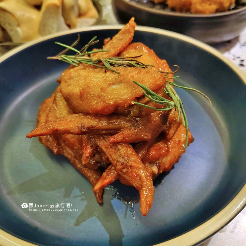 ▲ 開胃菜~墨西哥酸辣雞翅,這個擺盤有讓我想起日月潭的9蛙,雞次好吃真的有開胃的功能。