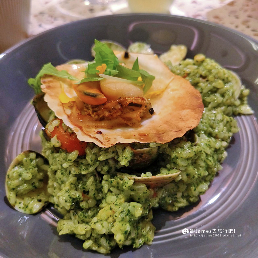 ▲ 擺盤很隨興的蛤蠣扇貝青醬燉飯,也是獲得認可好吃喔。