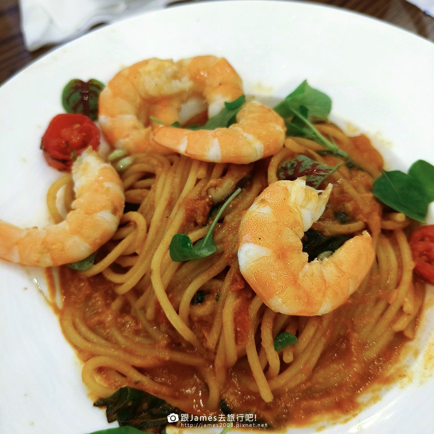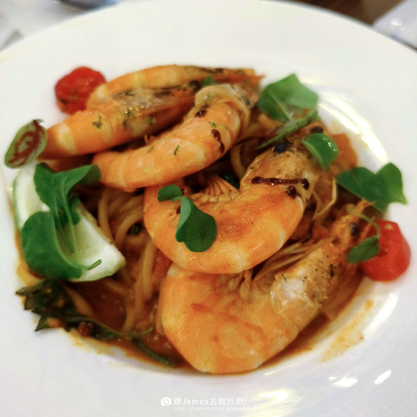 ▲壽星點的泰式鮮蝦義大利麵,鮮嫩多汁的大蝦搭配泰式香料,帶來一口口的鮮美風味。