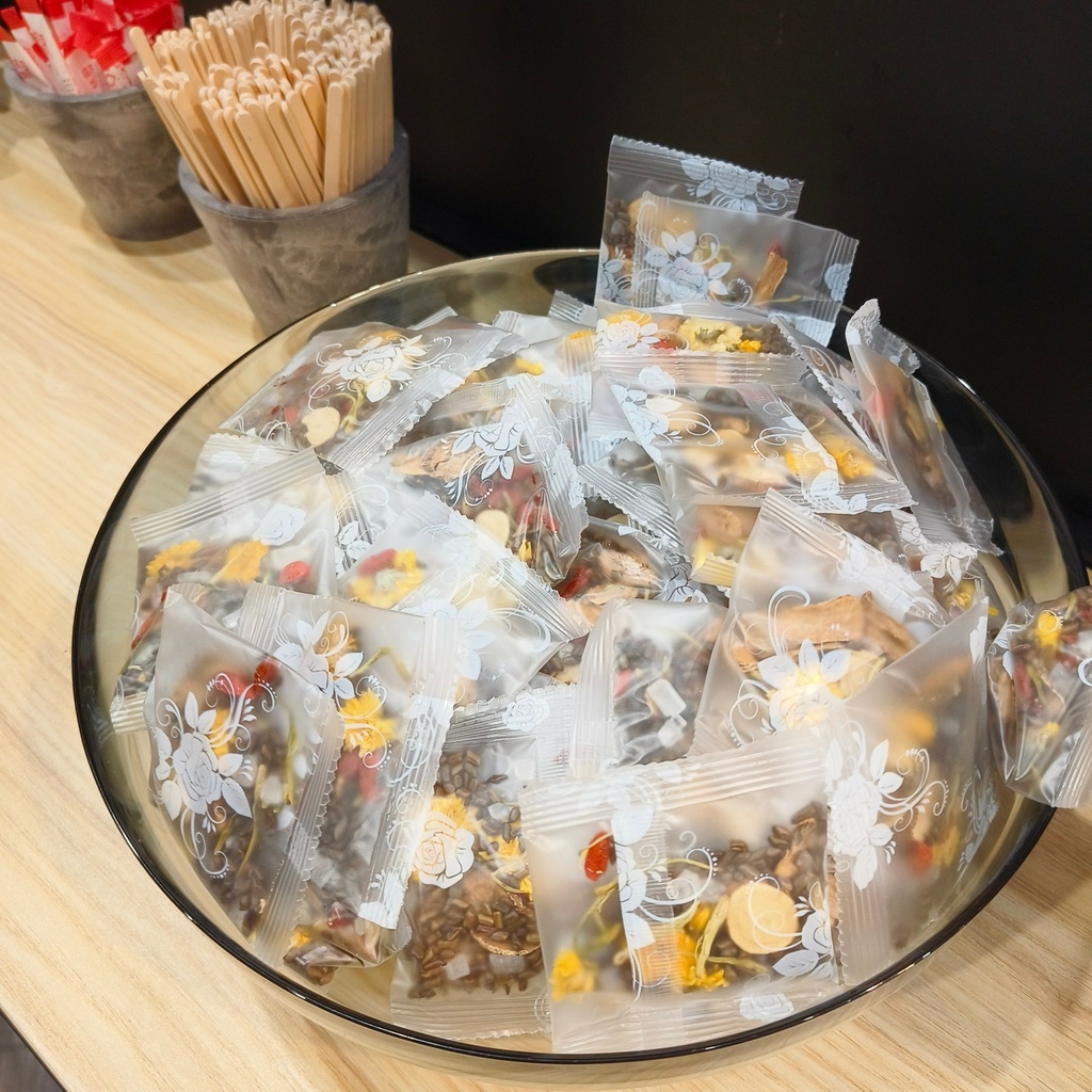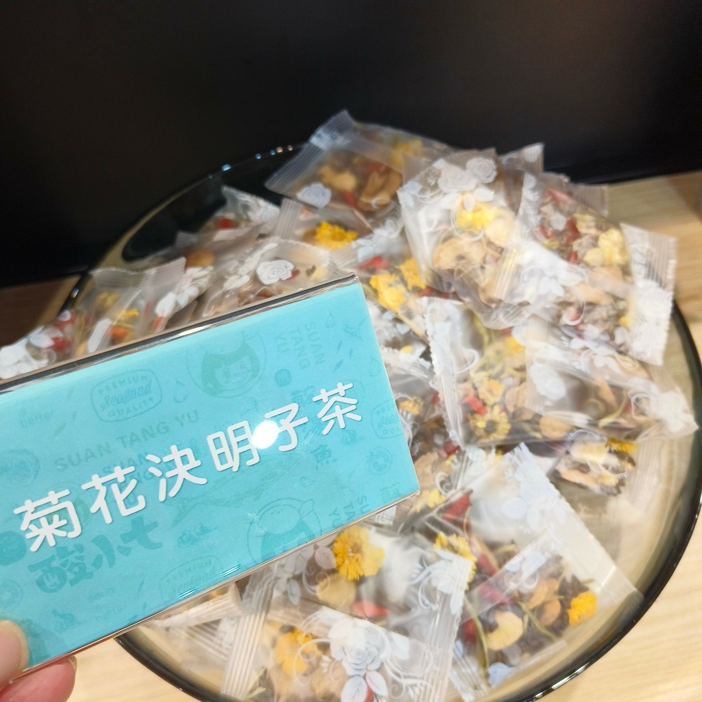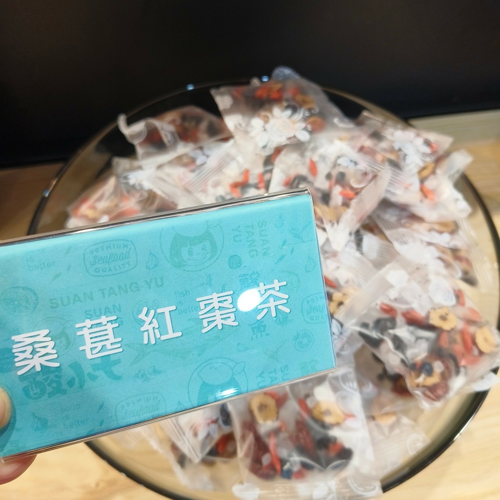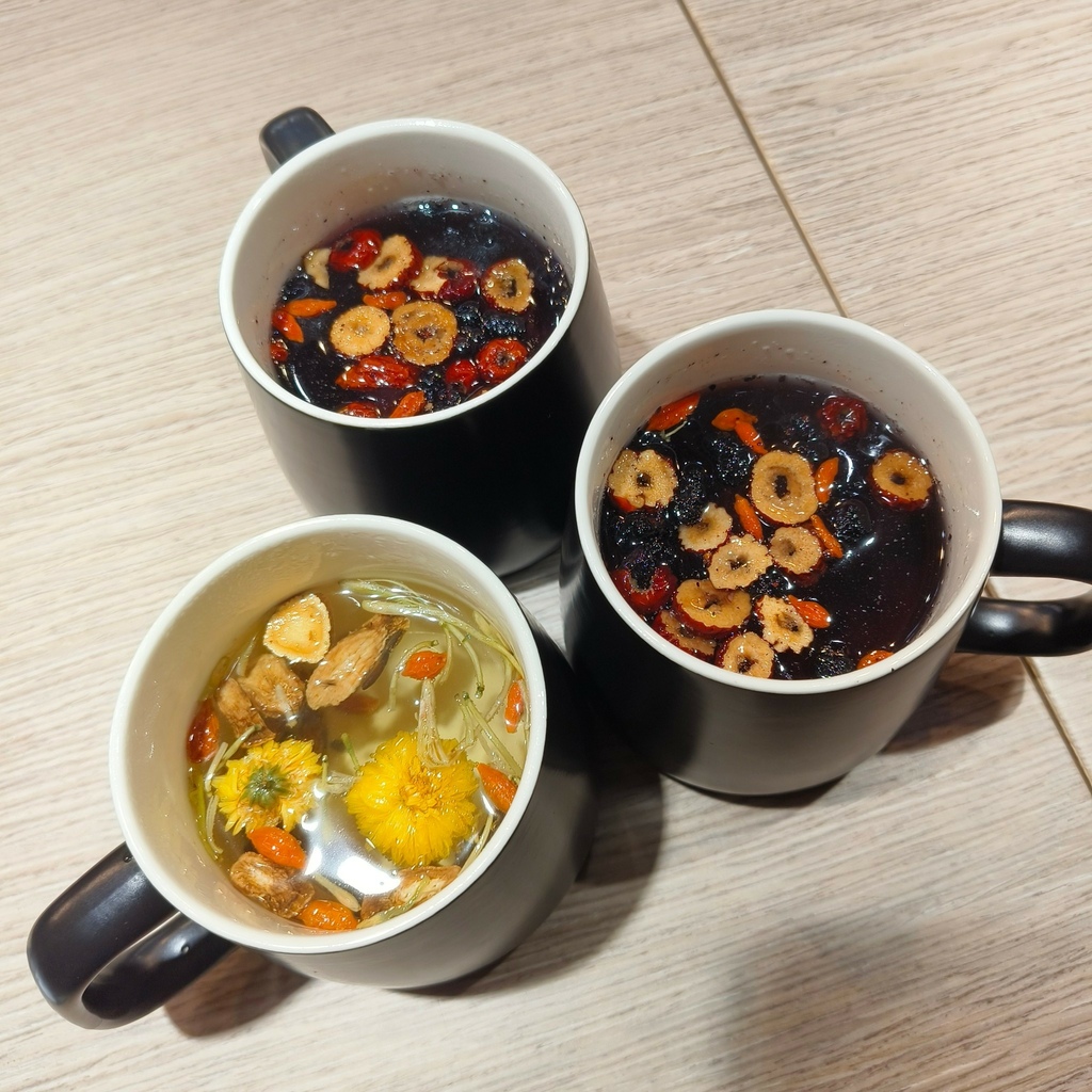 有兩種茶,分別是 ▲菊花決明子茶、 ▼桑葚紅棗茶。