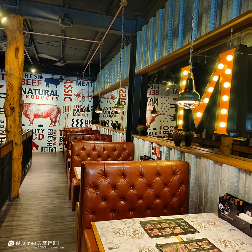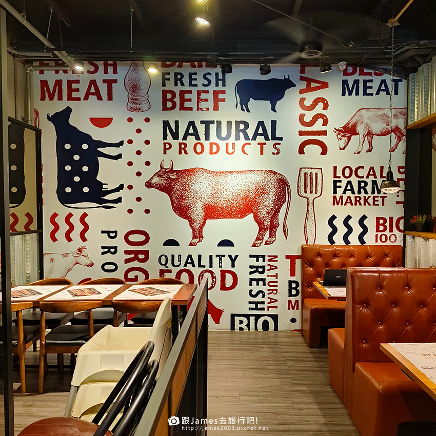 ▲▼很牛擁有濃厚的美式風情,原木和皮質靠背座營造溫暖氛圍,牆上是美式的彩繪。