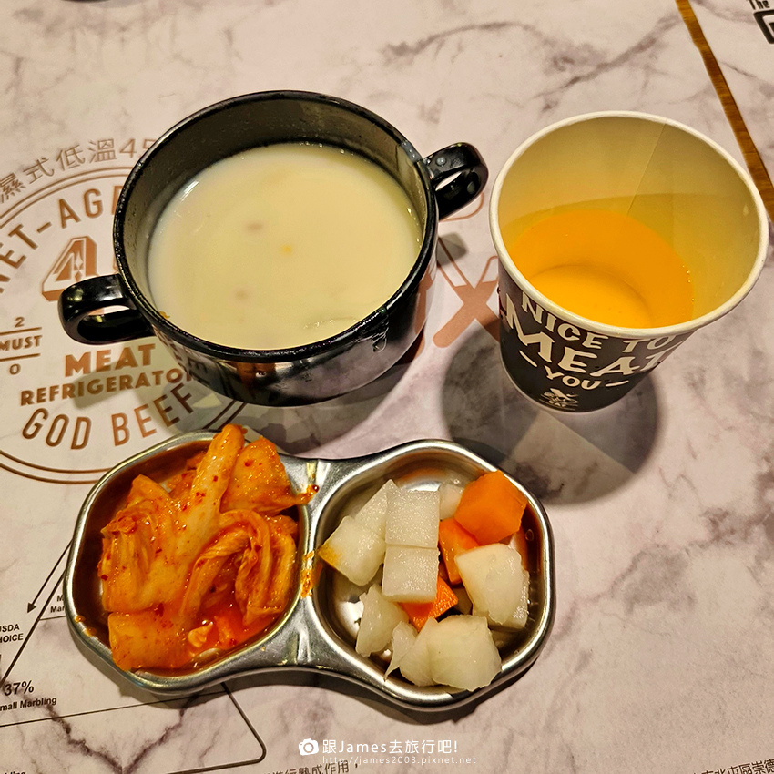 ▲提供自助玉米濃湯、香柚茶、泡菜、蘿蔔,讓您自由取用,盡享美味。