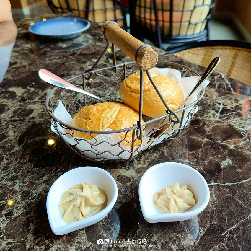 ▲小圓法餐前麵包一上桌,立刻被秒殺,外皮酥脆、內心柔軟,搭配抹醬就是開胃好搭檔。