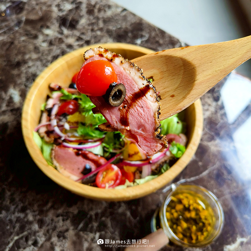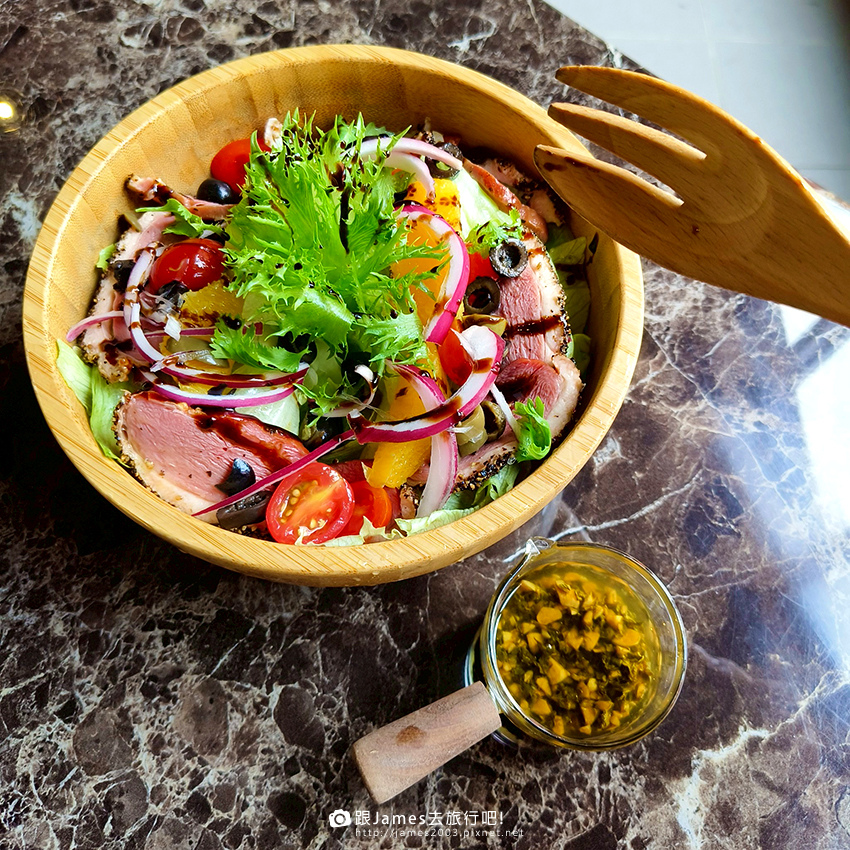 ▲▼煙燻櫻桃鴨沙拉~煙燻櫻桃鴨片搭配新鮮生菜,酸甜醬汁提味,完全不膩口。