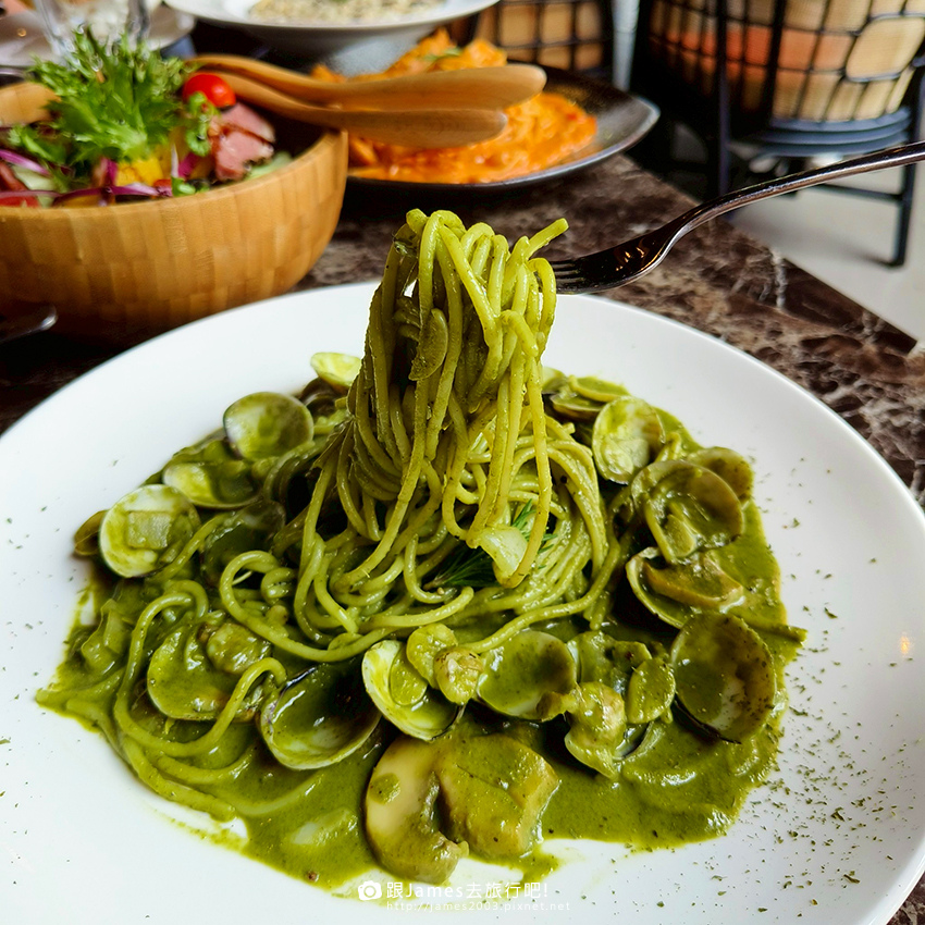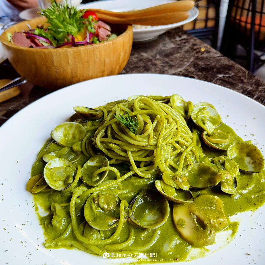 ▲▼羅勒松子青醬義大利麵~青醬香氣超迷人,羅勒清爽不膩,松子增添香脆口感,麵條Q彈到位,完全是經典不敗款。