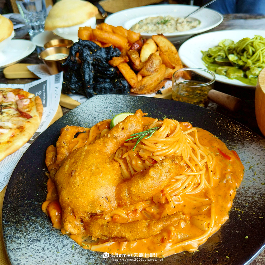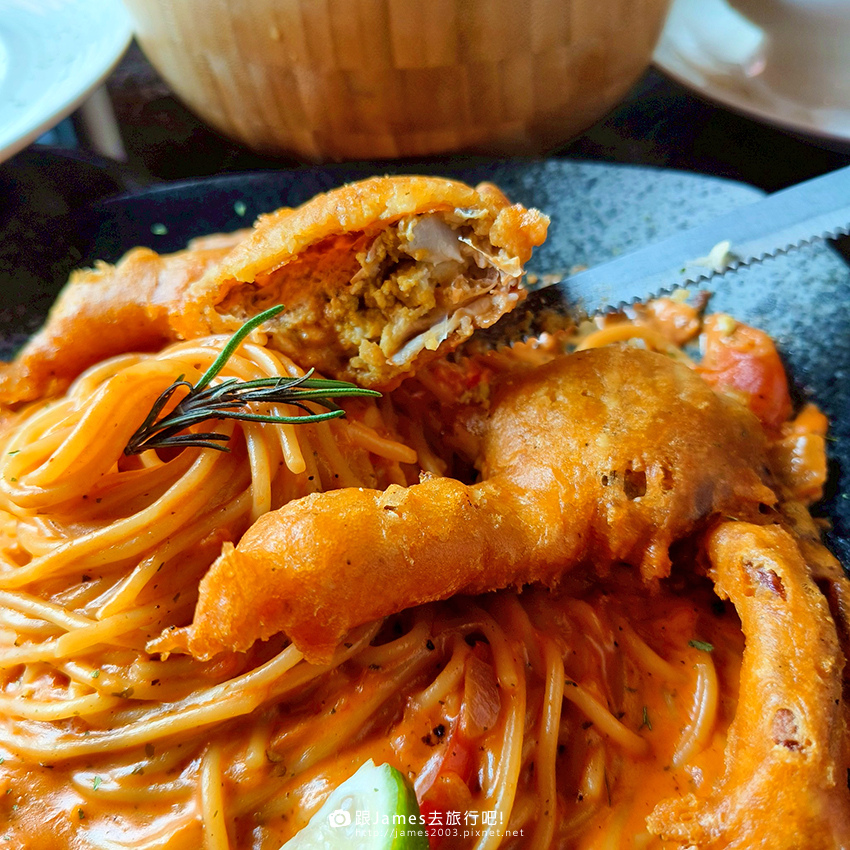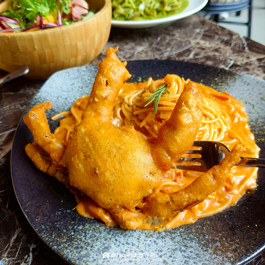 ▲ 軟殼蟹義大利麵~主角軟殼蟹直接躺在麵上,視覺超霸氣。